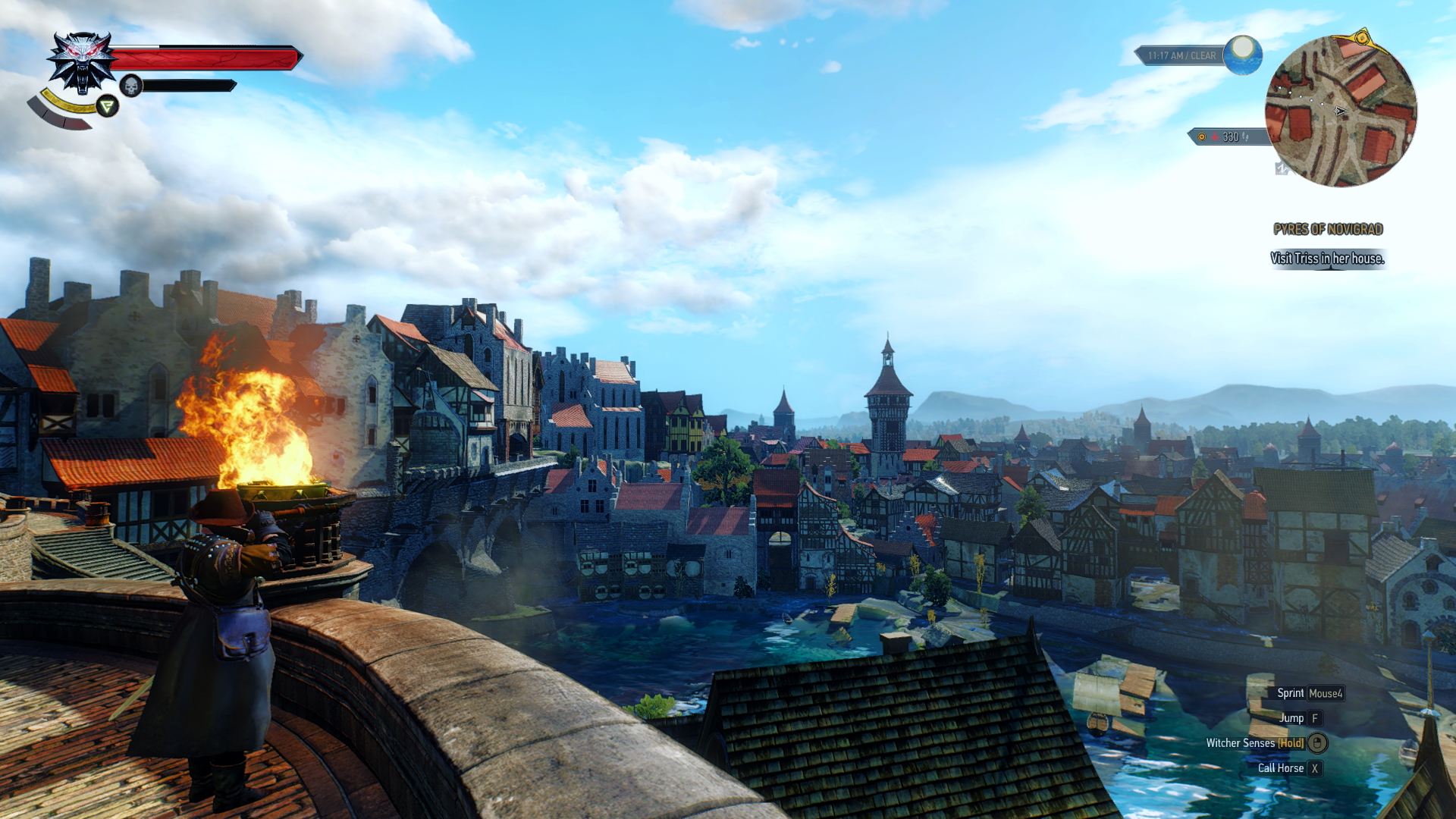 Geralt traveling all over the game's vast open world, from the war-torn